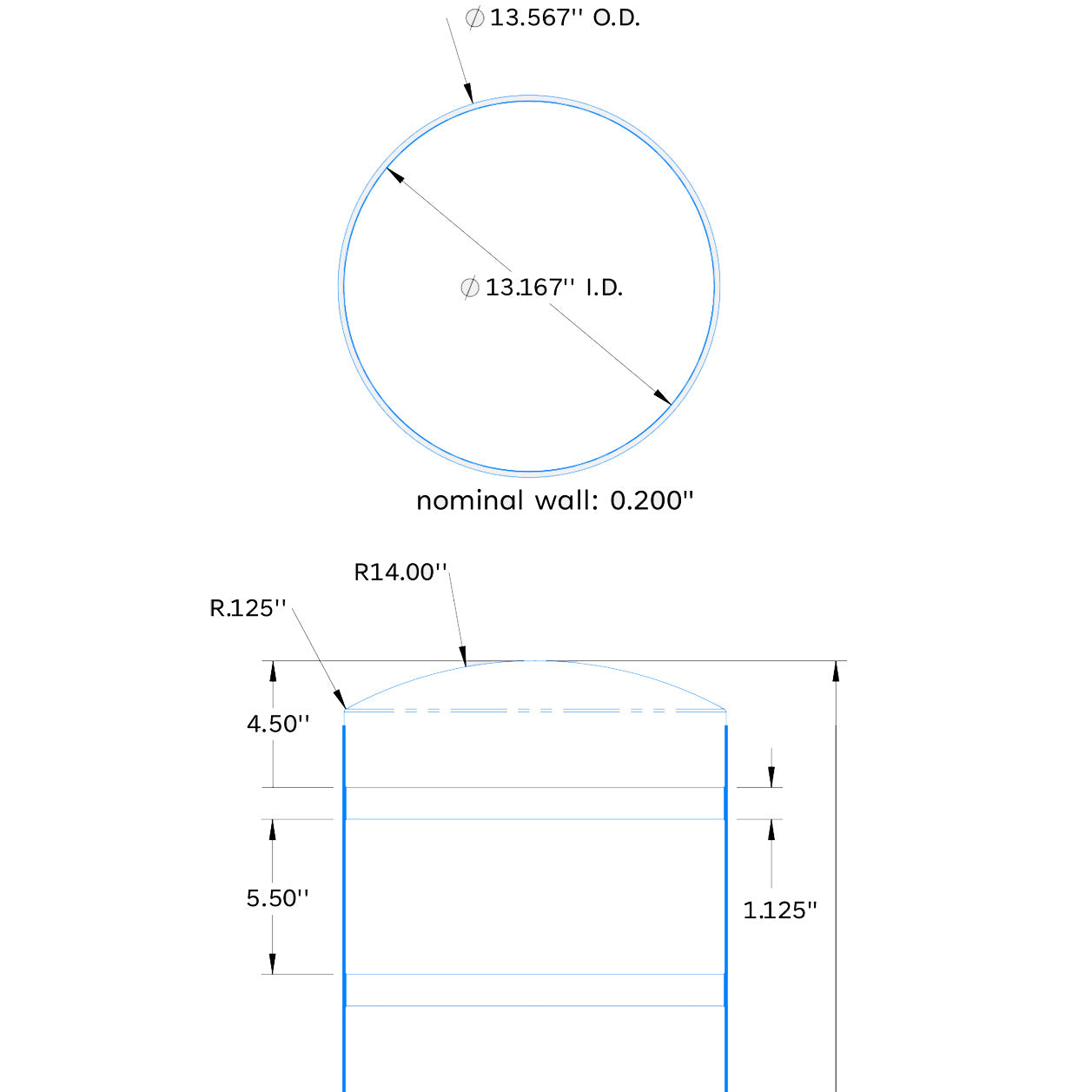 The 60 inch long by 13 inch diameter flat top bollard cover has a 13.167 inch inside diameter (ID). It is ideal for bollard posts up to 58 inches high with a diameter up to 12.75 inches. Our bollard covers protect and enhance the appearance of steel bollard posts used both indoors and outside. They are manufactured from durable, yet flexible, 0.125 inch thick high density polyethylene (HDPE), and are UV treated for longevity.